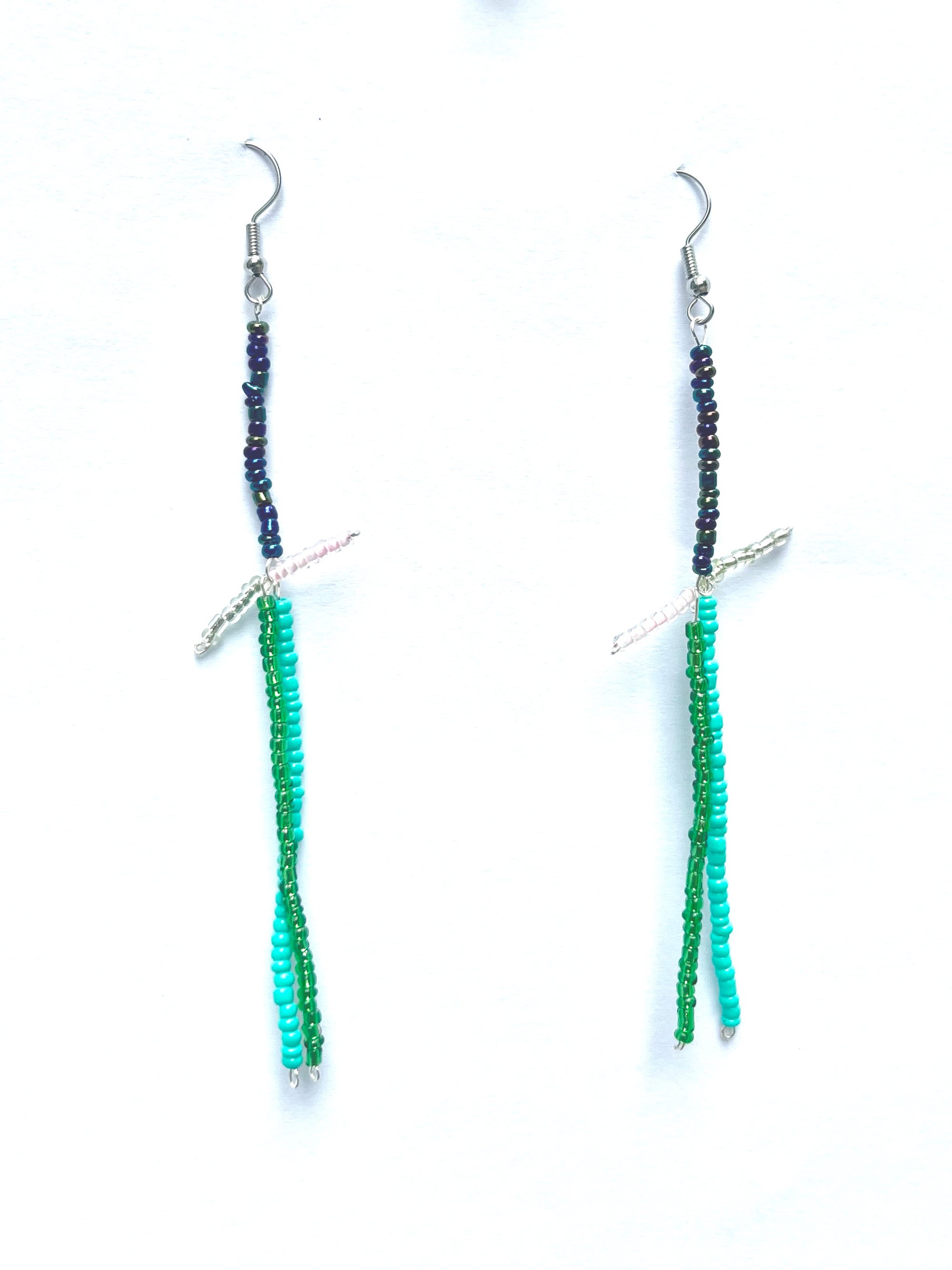 Oil spill cream pink aqua green glass beads on stainless steel wire