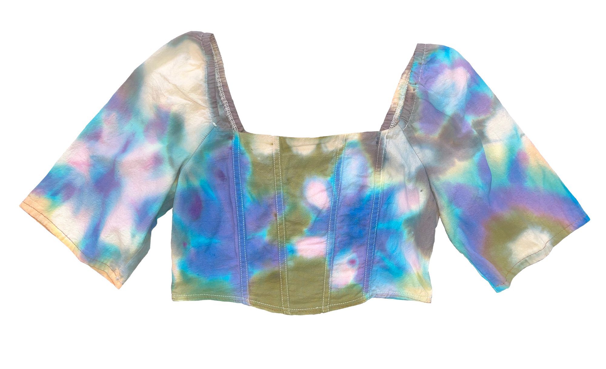 Blue violet and moss green Cotton corset Loose sleeves, elastic backing SML 15” across with stretch, 8” long