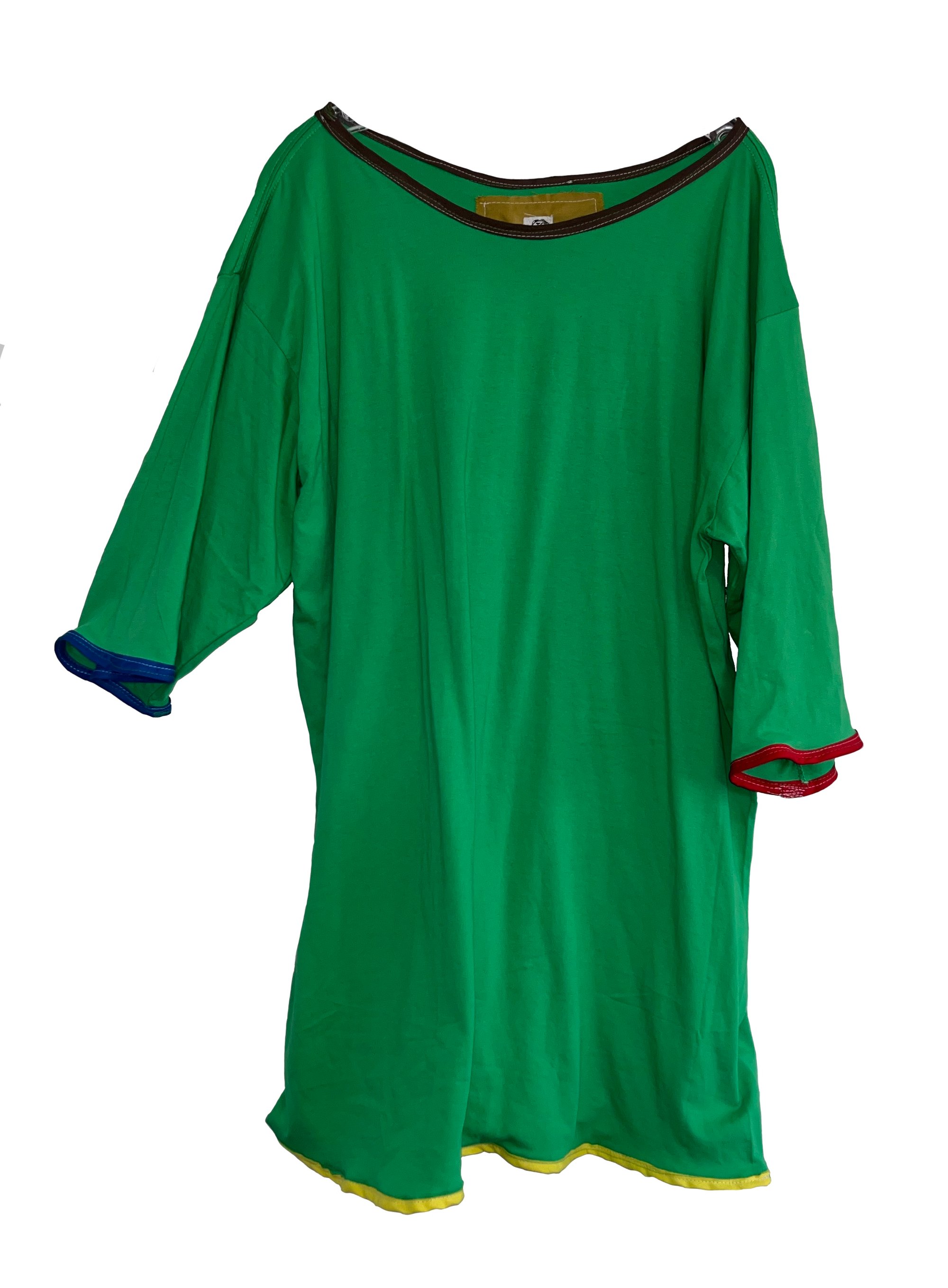 cotton tee dress with brown,blue,red and yellow cotton banding